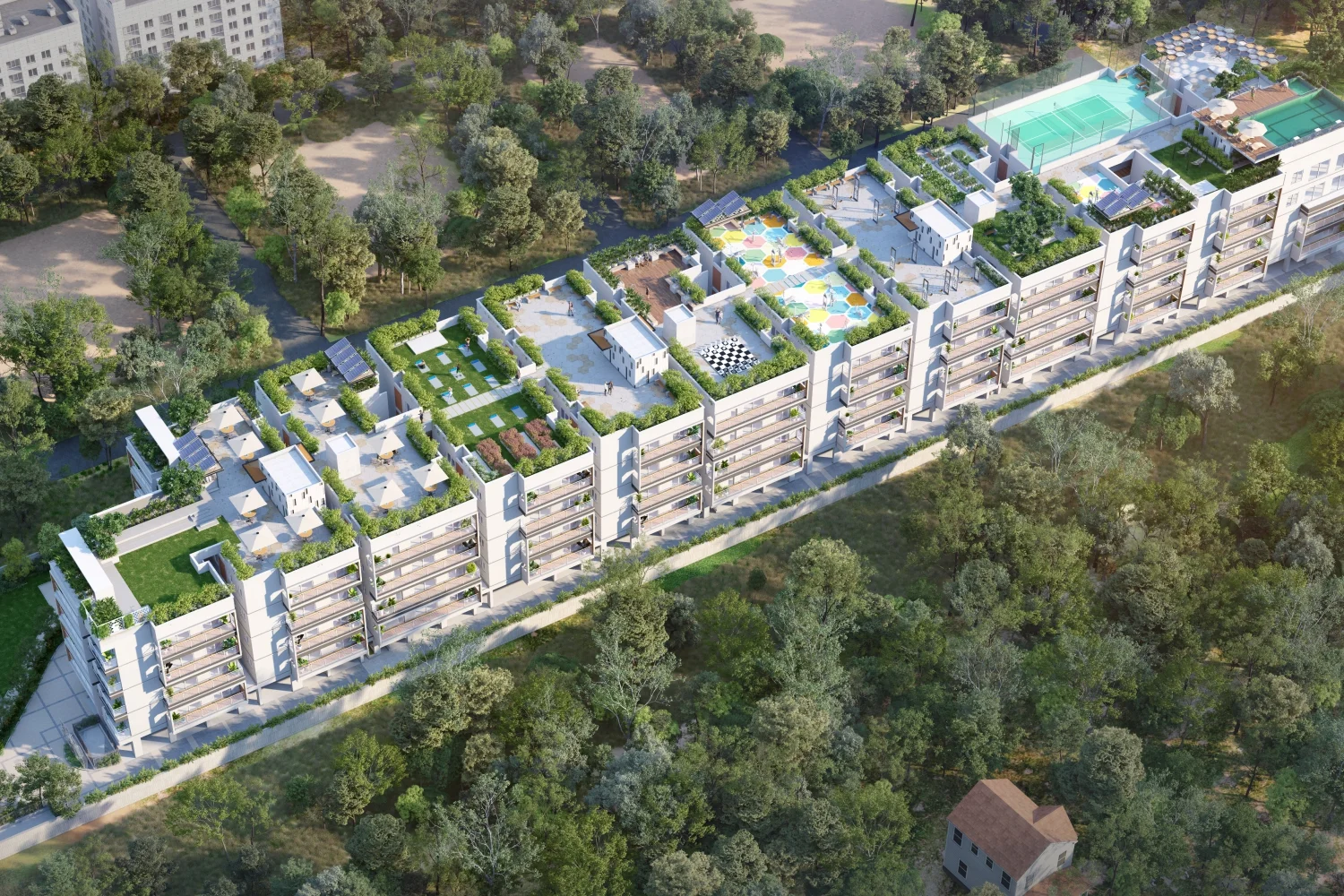 Acorn Hive is crafted for those who seek more from their home—more space, more light, and more life. Spread across 1.17 acres with 90 exclusive 2 & 3 BHK apartments, the project brings together low-density living and villa-like comfort. At Acorn Hive, every apartment features balconies with glass railings, offering a premium touch and unobstructed views, while the smart layout ensures zero space is wasted. Every home is East or West-facing for maximum natural light, and each detail—from quality fittings to full usage of the terrace space—has been designed to elevate everyday living. From sunrise yoga on the rooftop to sunset views from your terrace, Acorn Hive creates experiences that go beyond four walls. The project has 60% open space, Vastu-compliant, and built using solid block construction to ensure longevity