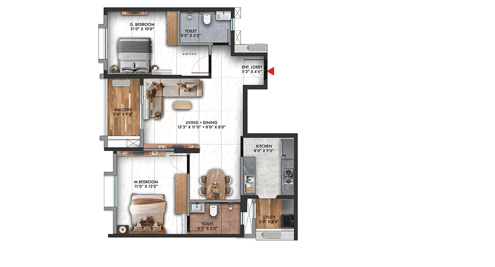 | TVS Emerald Auralis 2BHK Apartment | 1,124 sqft | Rs. 1.2 Cr onwards |